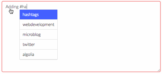 In my previous post I outlined how to integrate Algolia search into our front-end hashtag autocomplete, but I thought I would give a quick alternative to using an external service. This example largely follows the same structure as a a couple of recent screencasts over on Laracasts, where a username @mention autocomplete is implemented, so if you've seen those this will all be familiar.